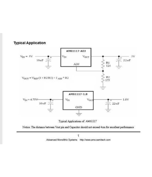 Regulator Liniar AMS 1117, tensiune de iesire 5 variante